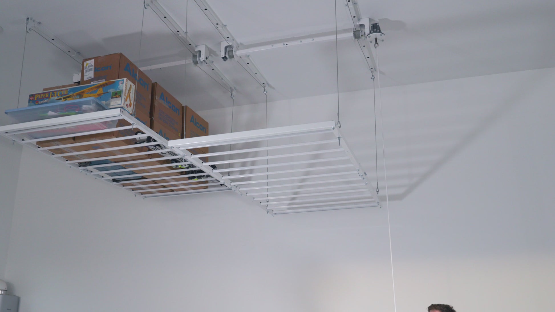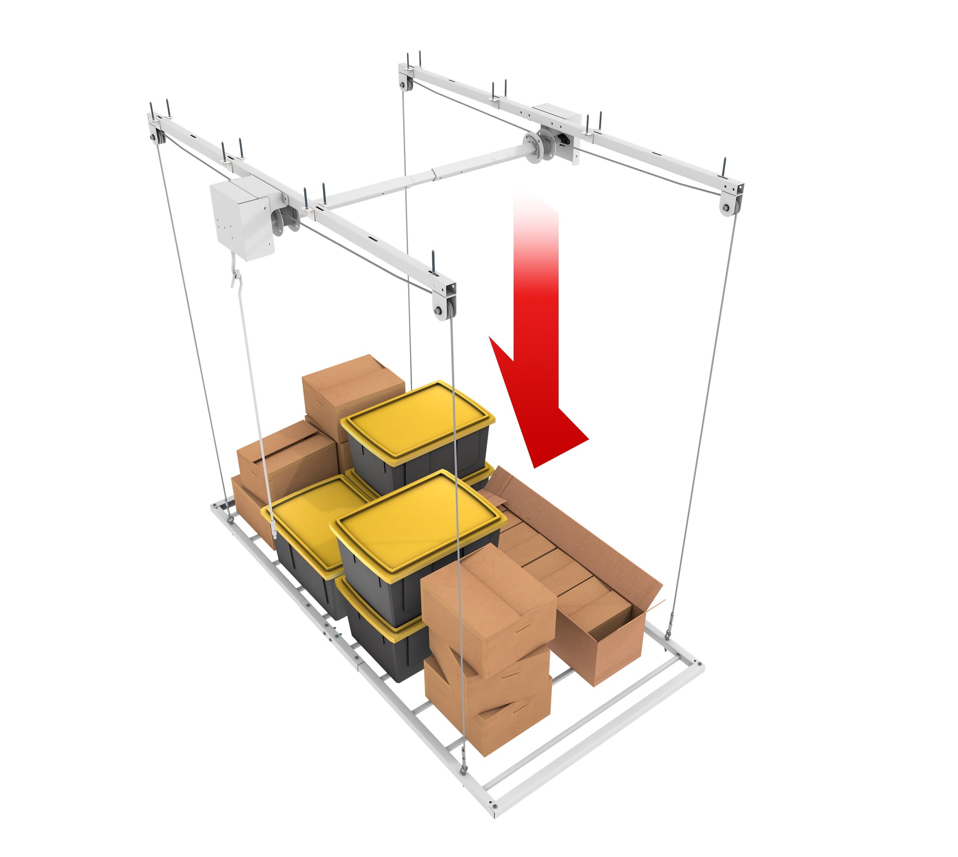 This PRO model features the same trusted design as our standard Storage Elevator but with an increased weight capacity, giving you the confidence to store more overhead without sacrificing floor space. Operate the lift safely from ground level using a standard power drill — no electricity or ladders required.