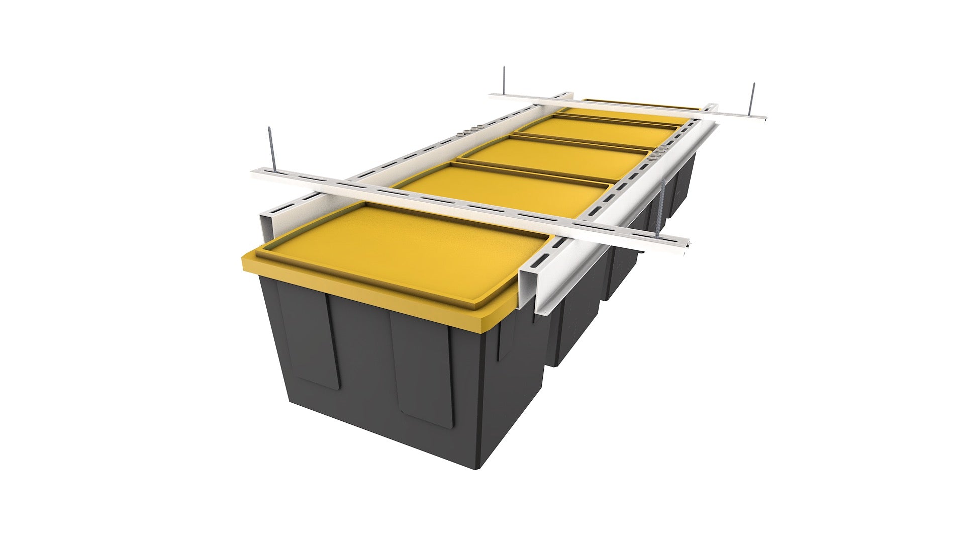 - 27-gallon totes hang 18β from the ceiling