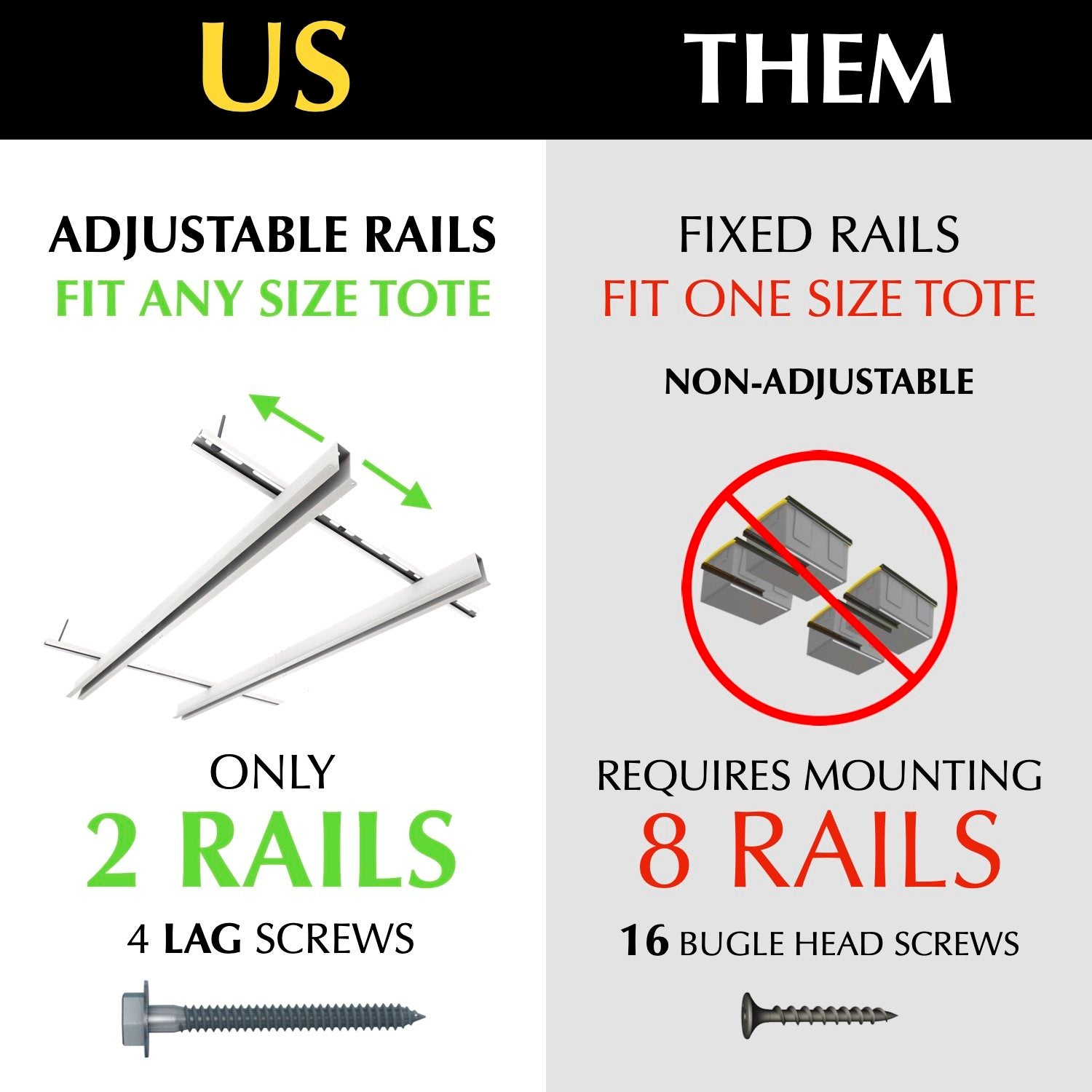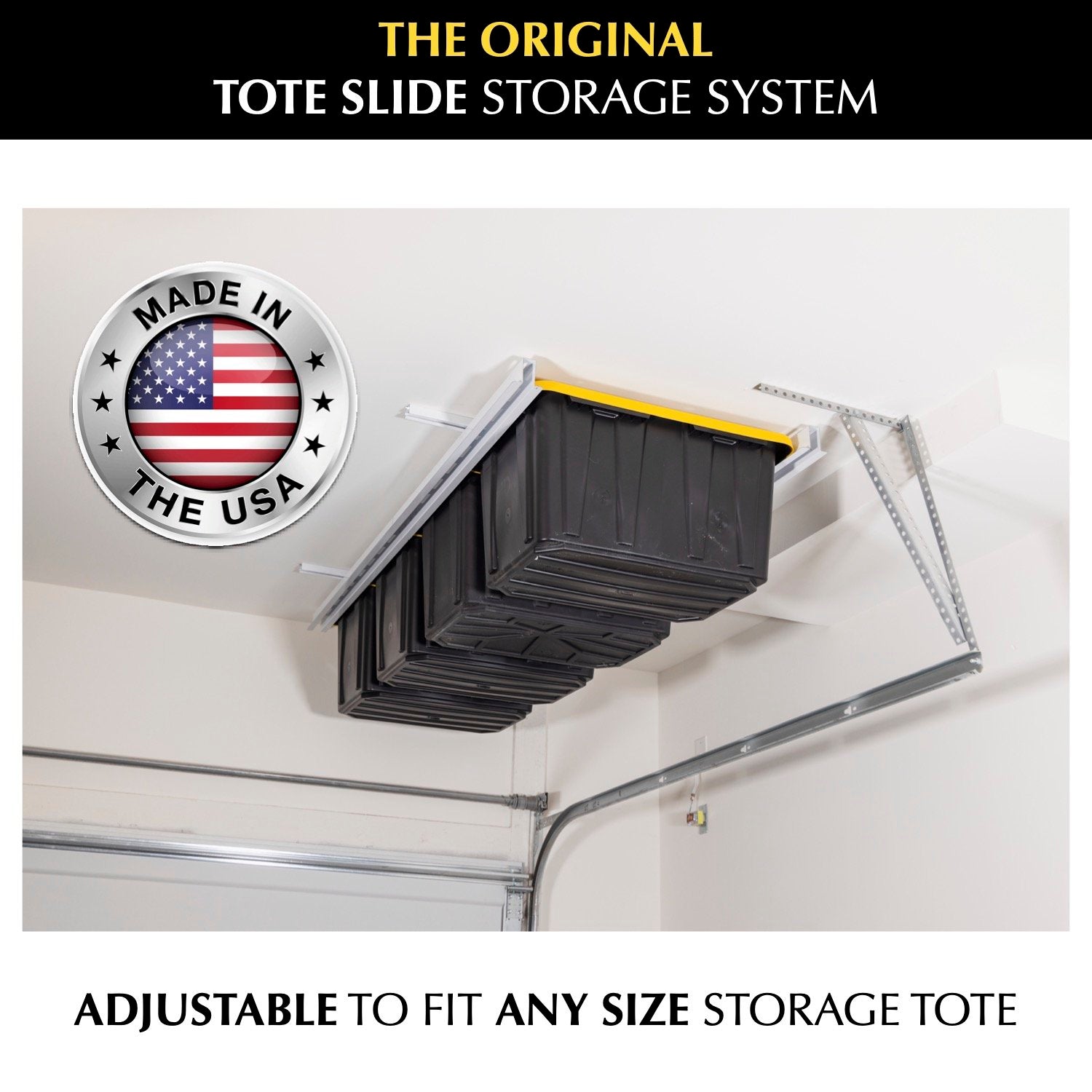 ADJUSTABLE RAILS TO FIT ANY SIZE STORAGE TOTE